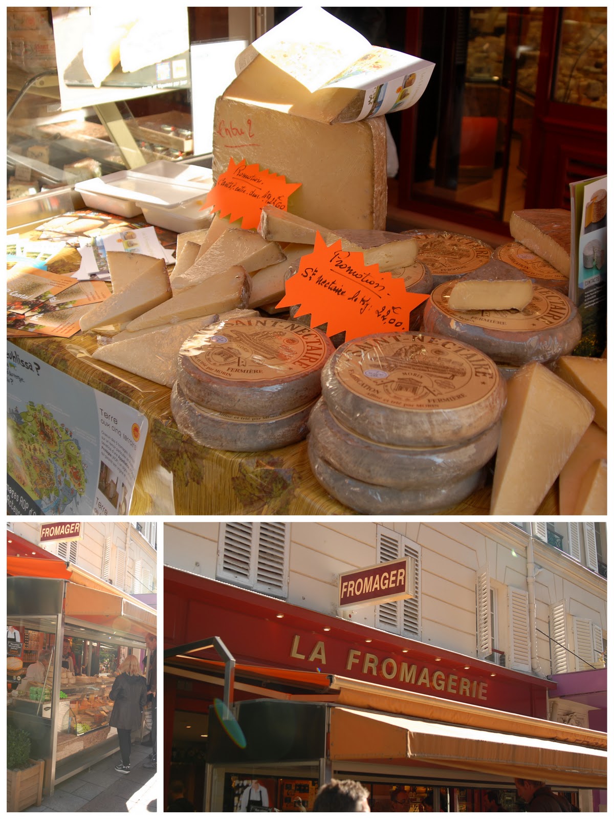 Rue Cler offers shopping the traditional way – where every store has a specialty and you stop in at all the shops to get what you need. We picked up a hunk of Swiss (for John) and thin Parmesan slices (for me) at the Fromagerie.